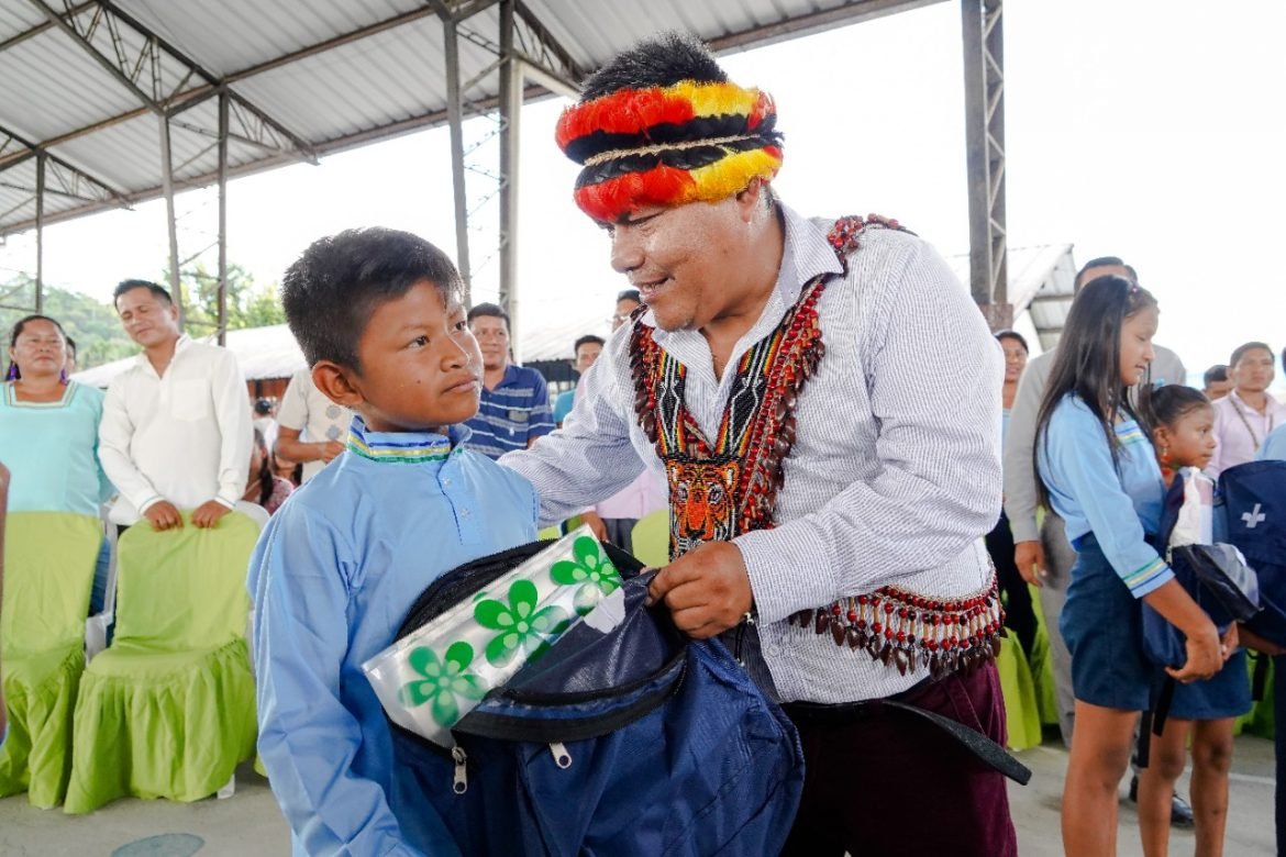Con mucha emoción y alegría 1700 estudiantes y 117 docentes se beneficiaron de la entrega de Kits escolares por parte de la empresa petrolera Pluspetrol Ecuador que opera en la provincia de Pastaza, en coordinación con el Distrito de Educación de Arajuno, a este acto simbólico asistió el Rómulo Antun, Secretario de Educación Intercultural Bilingüe y la Etnoeducación.