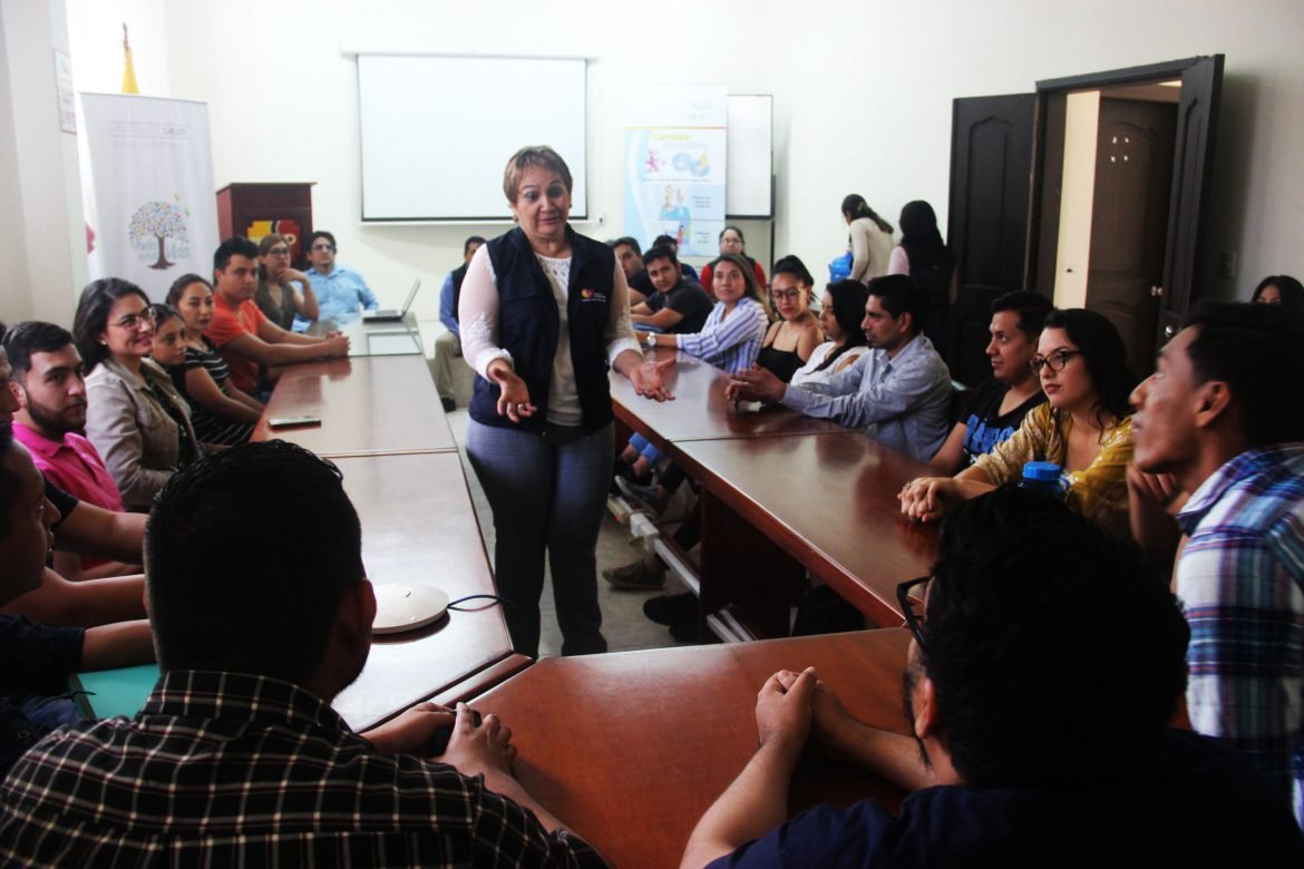 Teresa Altamirano, Directora Distrital, en su intervención al iniciar el proceso de capacitaciòn, motivó a los nuevos integrantes de salud a trabajar por el bienestar de la ciudadanía, propiciando ambientes y políticas públicas saludables para lograr la prevención de las enfermedades dentro del Primer Nivel de Atención.