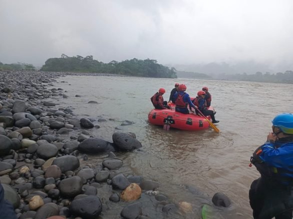 Bomberos tras la búsqueda de policía desaparecido en las aguas del río Pastaza