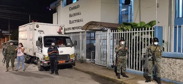 Bajo estricto resguardo militar, llegaron los kits electorales a la delegación provincial electoral de Napo
