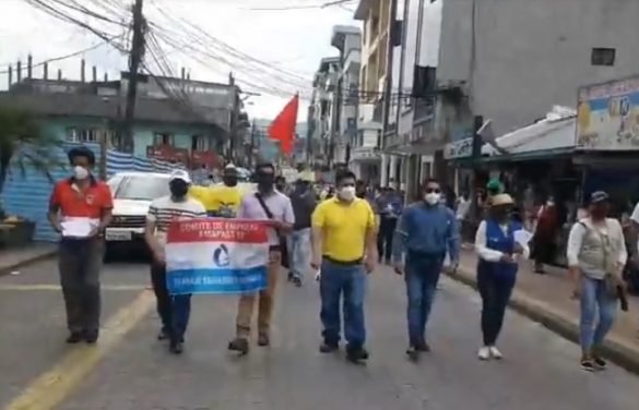 Trabajadores en medio de una de las marchas que se realizaron en el presente mes.…