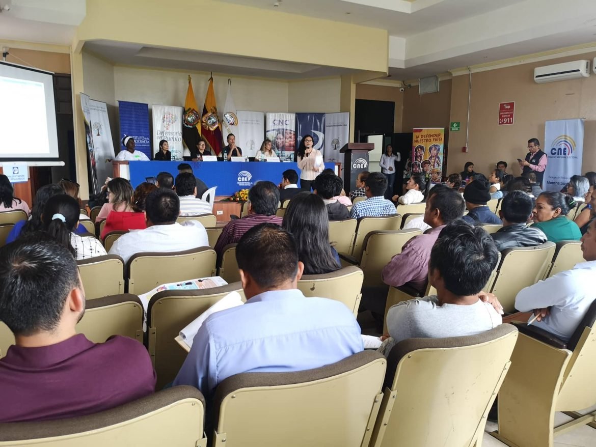 El Consejo Nacional Electoral, el Instituto de la Democracia y el Consejo Nacional de Competencias, desarrollaron en la ciudad de Macas, este pasado miércoles 24 de julio del 2019el taller denominado «Democracia, Derechos y Descentralización», con el apoyo de los Consejos de la Igualdad. En el evento, que se desarrolló en el Auditorio de la Democracia de la Delegación Provincial Electoral de Morona Santiago, participaron cerca de 100 autoridades electas y delegados de los Gobiernos Autónomos Descentralizados de la provincia.
