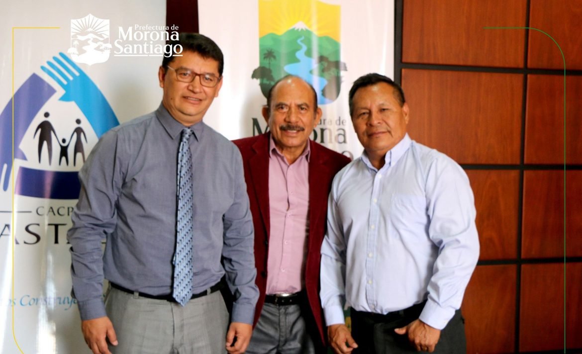 Edgar Acuña Gerente General de la Cooperativa de horro y Crédito CACPE Pastaza y Ramiro Revelo Gerente de CACPE Pastaza sede Macas, presentaron los servicios institucionales al Prefecto Rafael Antuni y su equipo de trabajo, con el fin de articular nuevas alternativas de desarrollo para la población de la provincia de Morona Santiago.