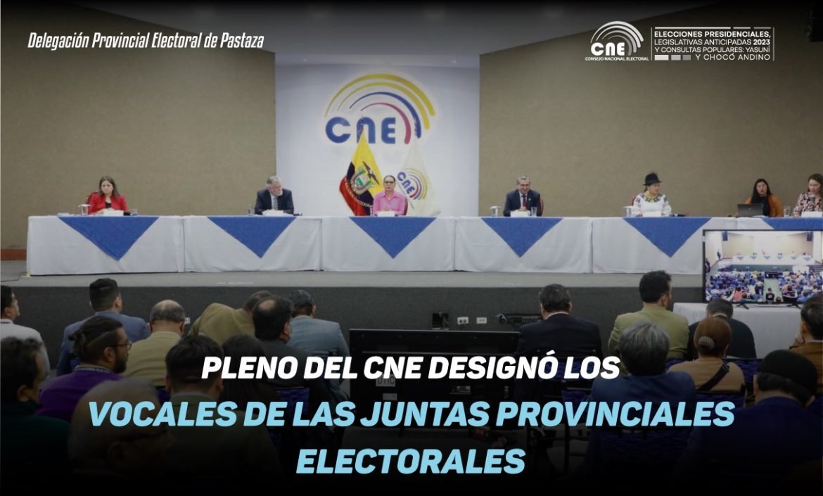 Este martes, 30 de mayo, el Pleno del Consejo Nacional Electoral (CNE) designó a los vocales de las 24 Juntas Provinciales Electorales, quienes acorde a sus competencias estarán al frente del proceso en cada jurisdicción de las Elecciones Presidenciales y Legislativas Anticipadas 2023.