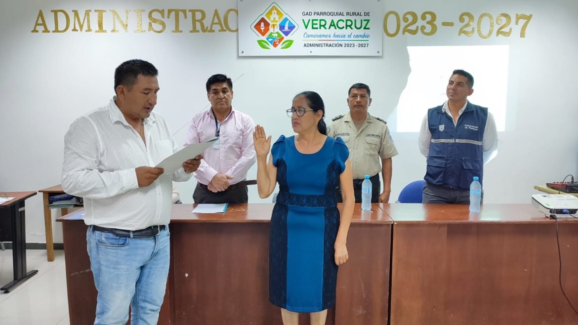 Franklin Martínez, Presidente del GAD Parroquial de Veracruz, realizó la toma de juramento y expresó su compromiso con la institución y la ciudadanía. “Con el objetivo de que la ciudadanía reciba una atención digna, expresamos nuestro compromiso en la dotación de un espacio físico privado para el juzgado de paz”, resaltó.