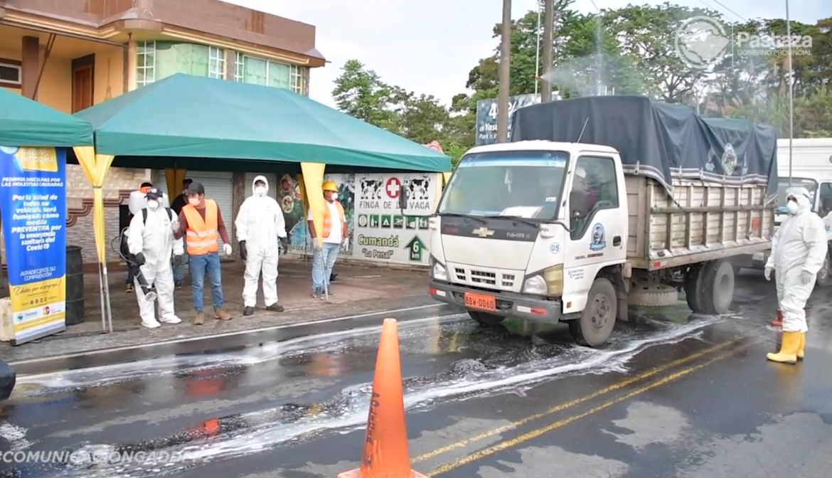 El Gobierno Provincial de Pastaza, a partir de la declaratoria de emergencia sanitaria, como parte del COE provincial de Pastaza, continúa realizando la desinfección vehicular en los tres puntos de ingreso interprovincial: