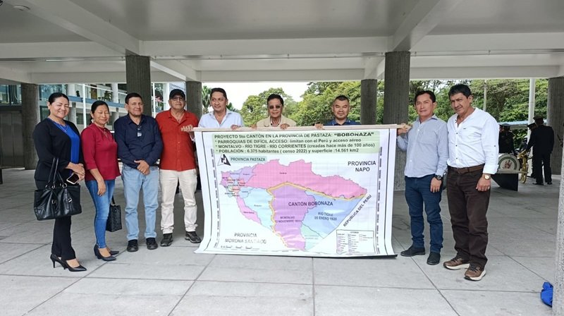 La semana pasada, el Comité Procantón Bobonaza realizó una importante gestión ante el Sr. Presidente de COMAGA Ing. Cesar Castro y ante el Sr. Presidente de Consejo de Participación Ciudadana y Control Social Magíster Andrés Fantoni, solicitando apoyo para cumplir el 1er paso de reformar el literal f) del Artículo 22 de la Ley del COOTAD para cambiar el requisito de población, que actualmente es de 10.000 habitantes y nosotros proponemos sea con 6.000 habitantes, ya que en el país existen cerca de 30 cantones con menos de 5.000 habitantes.