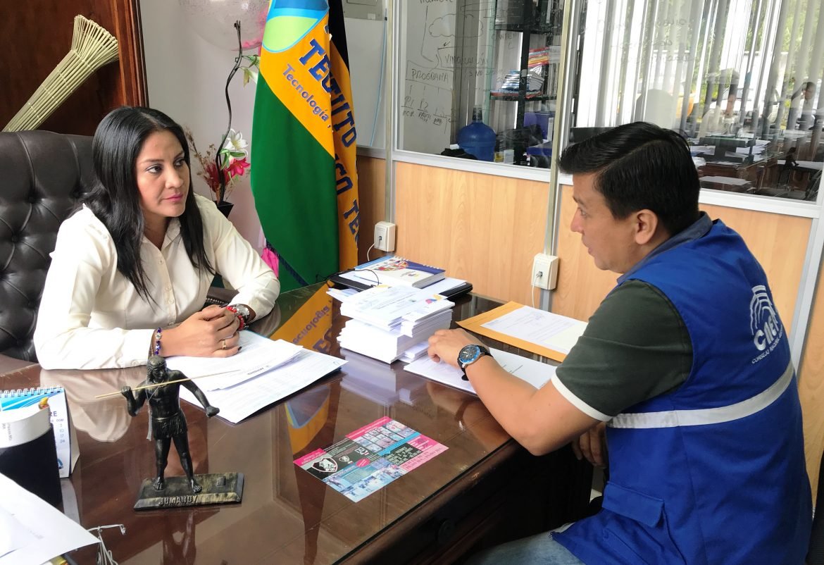 La tarde de este miércoles 2 de octubre de 2019, servidores de la Delegación Provincial Electoral de Napo mantuvieron una reunión de trabajo con Lorena Yánez, directora del Instituto Superior Tecnológico Tena (ISTT). La cita tuvo como finalidad coordinar las acciones que la entidad electoral cumplirá durante el proceso de elección de las nuevas dignidades del Órgano Colegiado Superior y Consejo Estudiantil de ese centro educativo.