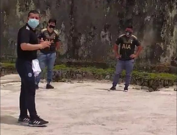 Profesor César García en charla técnica con jugadores del Pastaza SC