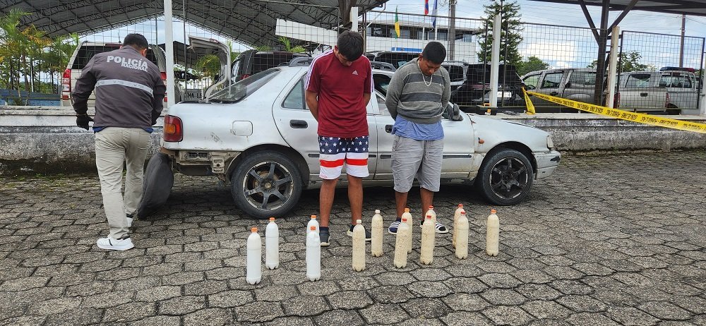 Como evidencias se tiene un total de 13 botellas con la sustancia sujeta a fiscalización, dos personas detenidas en que se encontraban en su interior, vehículo en poder de la policía, un celular portátil y dinero en efectivo. Inmediatamente se hace conexión con otras provincias para poder determinar cuál es el origen de esta sustancia. Posiblemente se dirigía a otra provincia al interior del país para el consumo y venta.