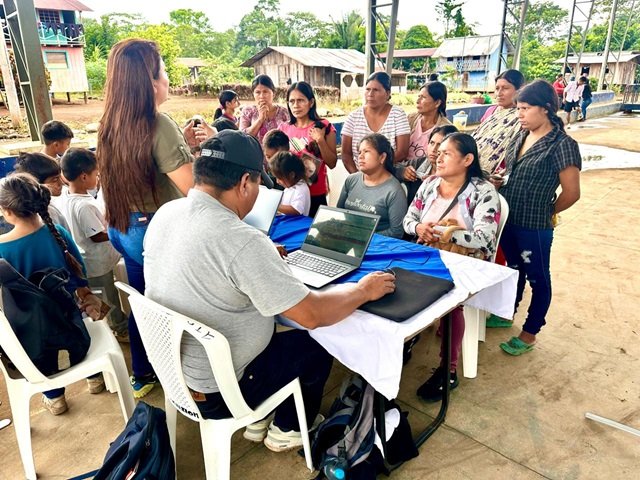 Nunkui Tiwi, residente de la comunidad Kumay, recibió atención en el balcón de servicios del MDH, durante la brigada que se activó en su localidad. Aquí se enteró que es nueva usuaria del Bono 1000 Días, incentivo económico que busca prevenir y reducir la desnutrición crónica infantil. «Gracias a los técnicos del MDH pude activar el Bono. Estas visitas nos ayudan a acceder a nuestros derechos», señaló.