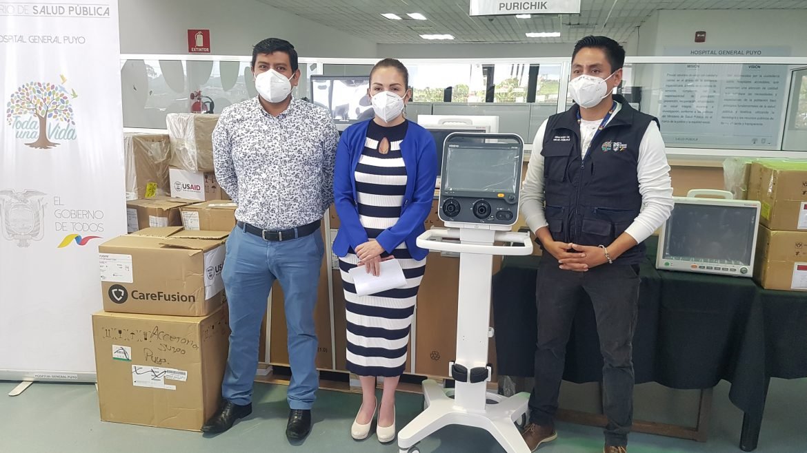 Fabián Chango, director del hospital general Puyo agradeció la entrega de este lote de equipos, entre ellos: dos ventiladores para el área de cuidados intensiva, 5 monitores multiparámetros, 2 ecógrafos para la unidad de cuidados intensivos y áreas de emergencia y dos respiradores para soporte de los pacientes críticos.