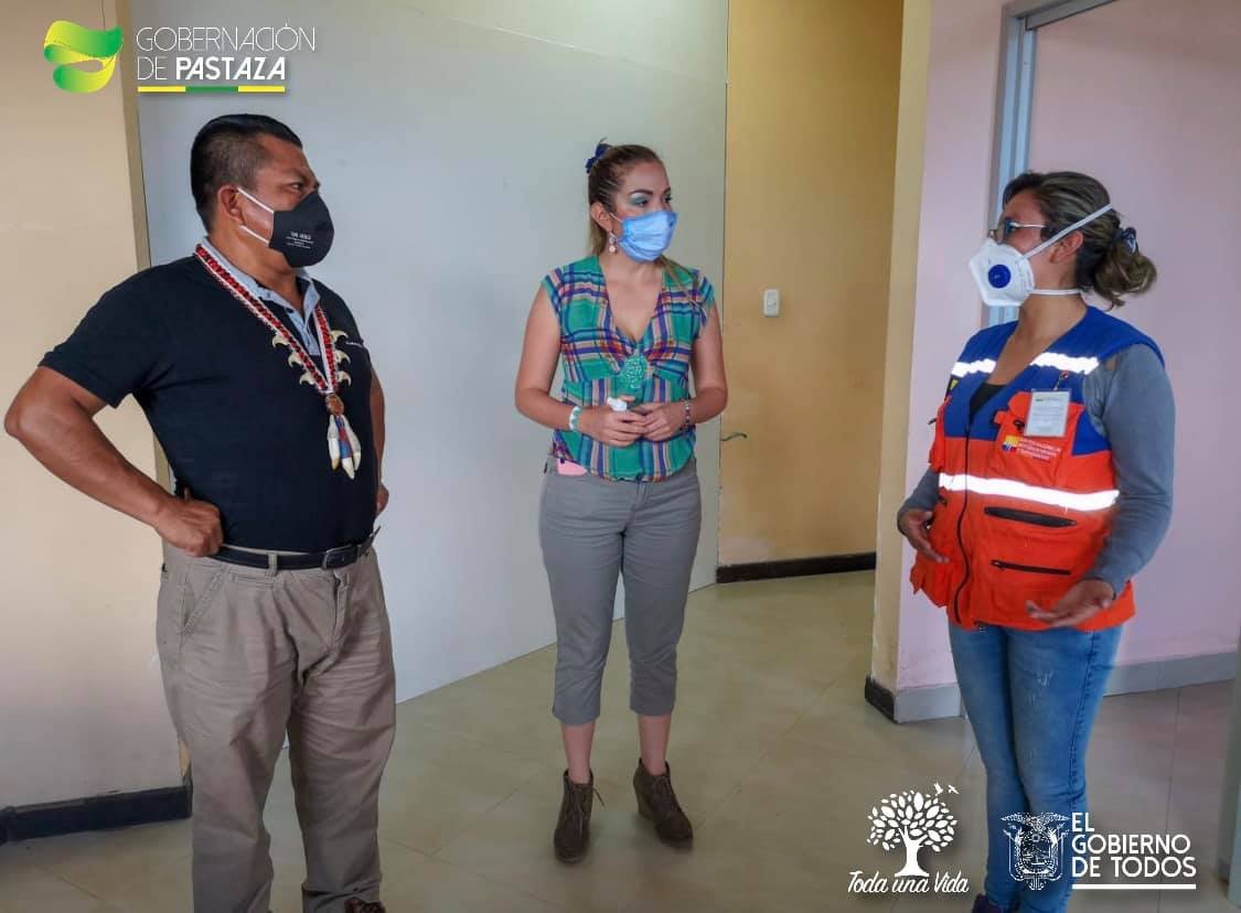 Autoridades del COE Provincial, recorrieron las instalaciones del CAT para pacientes Covid-19 en el cantón Arajuno, les acompaña, el Alcalde del cantón César Grefa a quien le entregan insumos para el equipamiento como: colchones, almohadas, sábanas, cobertores, biombos, camas, implementos de limpieza y cocina, con el objetivo de atender, cuidar y garantizar asistencia oportuna a los ciudadanos que hagan uso de este espacio físico.