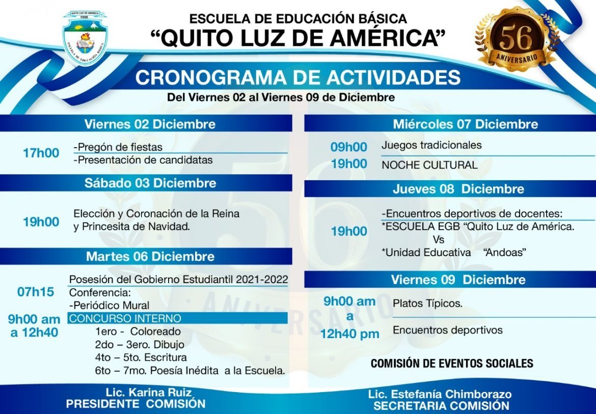 La comunidad educativa de este importante establecimiento, se prepara para festejar con regocijo y algarabía un nuevo aniversario de su creación, con motivo de la celebración del 6 de diciembre, fecha en la que la capital de la república festeja alborozada su aniversario de fundación, para lo cual han elaborado una interesante agenda de eventos que precisamente se iniciara este dos de diciembre.