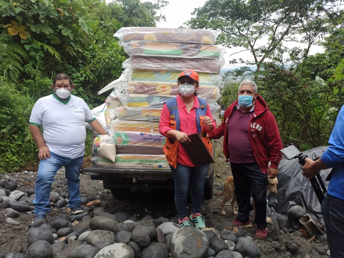 El Municipio de Pastaza a través de la Unidad de Medio Ambiente y Riegos, se activó inmediatamente para entregar la ayuda de primera respuesta consistente en Kits de alimentos, con la finalidad de apalear de alguna manera las necesidades de las familias afectadas. Mientras que la Secretaría de Gestión de Riesgos, por su parte, también les ayudó con la entrega de colchones y frazadas.