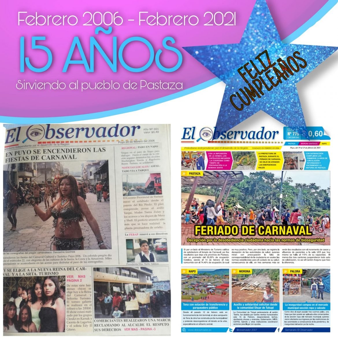 Un 24 de febrero del año 2006, circuló la primera edición impresa del rotativo “El Observador” como un medio de comunicación regional, enfocado en resaltar los hechos más importantes de la ciudad, Provincia y Centro de la Región Amazónica.