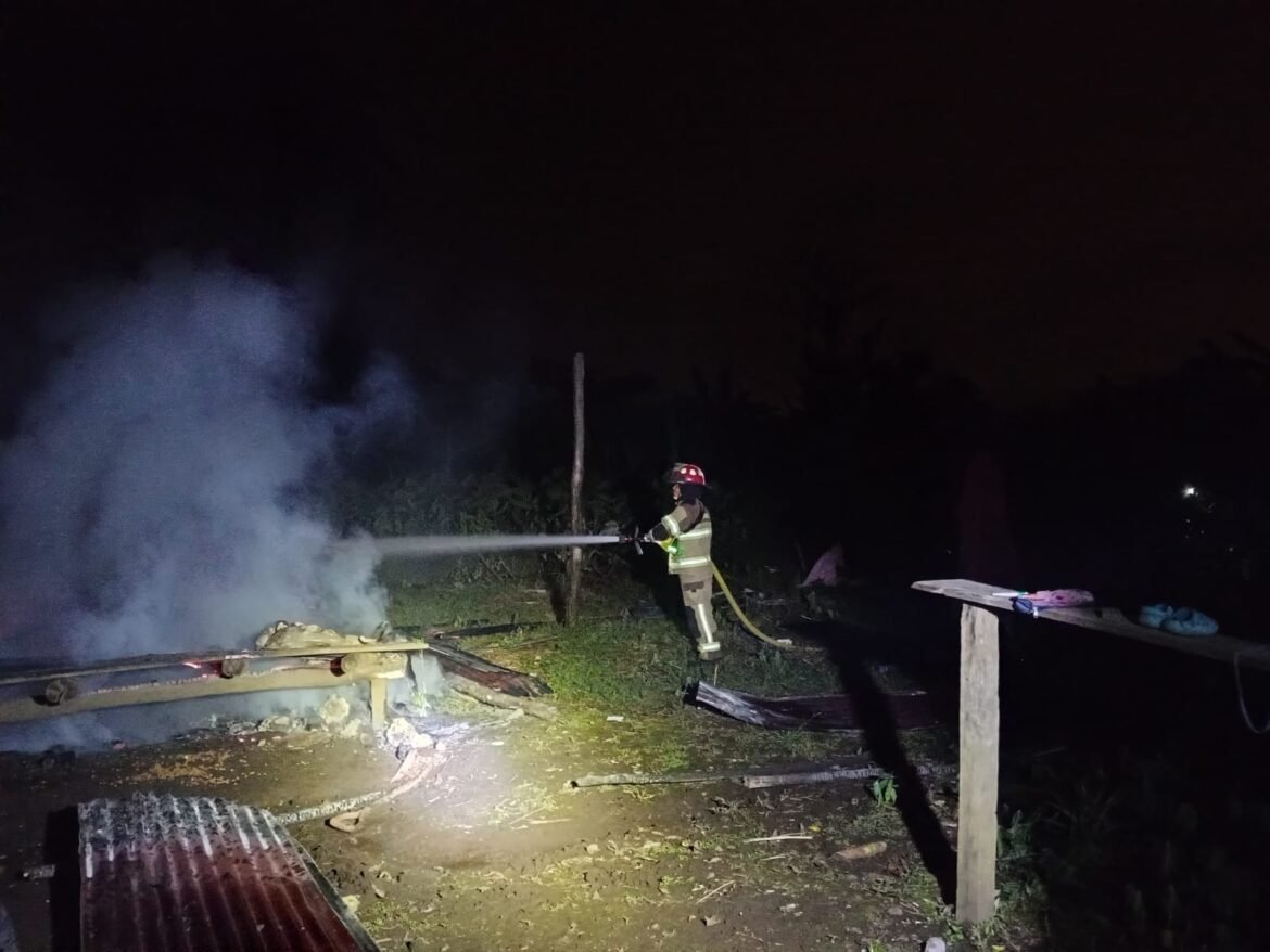 Ante el aviso, personal del Cuerpo de Bomberos se dirige al lugar señalado, en donde se verifica un incendio estructural de construcción de madera desarrollado – espacio abierto sin presencia de víctimas, en su etapa de decrecimiento consumido en su totalidad con pérdidas materiales, se procede a controlar, enfriar y a sofocar el incendio utilizando ataque defensivo progresivo, posterior se realizar remoción de escombros dejando la escena segura a cargo de personal de Policía Nacional y de la propietaria Janina Inabel Aranda Gayas, de 27 años de edad.