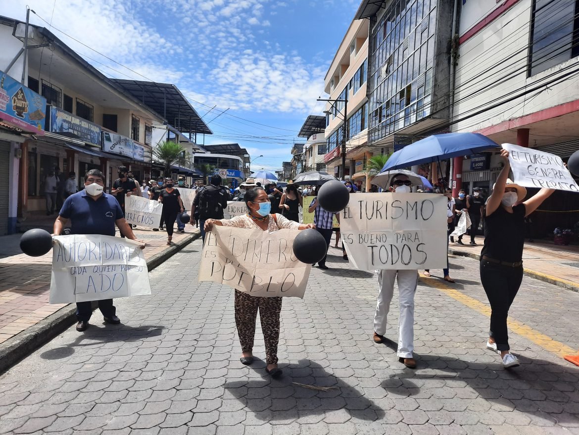 Comerciantes, operadores turísticos, hoteleros, restaurantes, sector de la construcción y expendedores de licores, entre otros, se concentraron la mañana del lunes 17 de agosto, en las instalaciones de la Cámara de Turismo, para una marcha hacía las principales instituciones: Gobernación, Municipio de Pastaza y Prefectura.