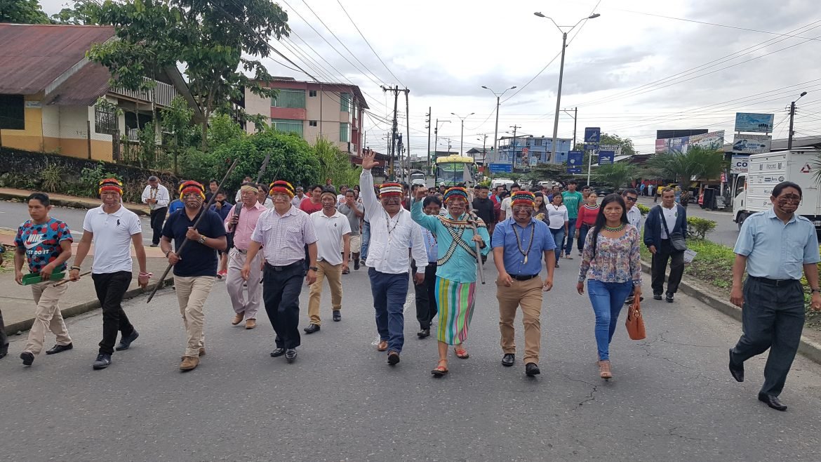 Bajo el lema: “La casa no se vende, la casa de defiende” el pueblo de la nacionalidad Achuar del Ecuador, realizó una marcha, el pasado viernes 13 de septiembre, hacia el palacio de justicia, con la finalidad de participar en la audiencia y exigir la nulidad de la sentencia que dispone el embargo de su edificio sede ubicado en la ciudad de Puyo.