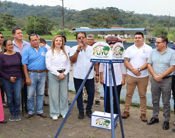 El acto de colocación de la primera piedra fue un acto muy significativo, que contó con la presencia de importantes autoridades como: Soraya Vásconez, gerente zonal 3 del Banco de Desarrollo, Oswaldo Valverde, presidente del Consejo de Planificación y Desarrollo Amazónico, Rolando Ramos Gobernador de Pastaza, Luis Ágreda, presidente de la Federación de Barrios de Puyo y el alcalde Germán Flores Meza con todo su equipo de trabajo.