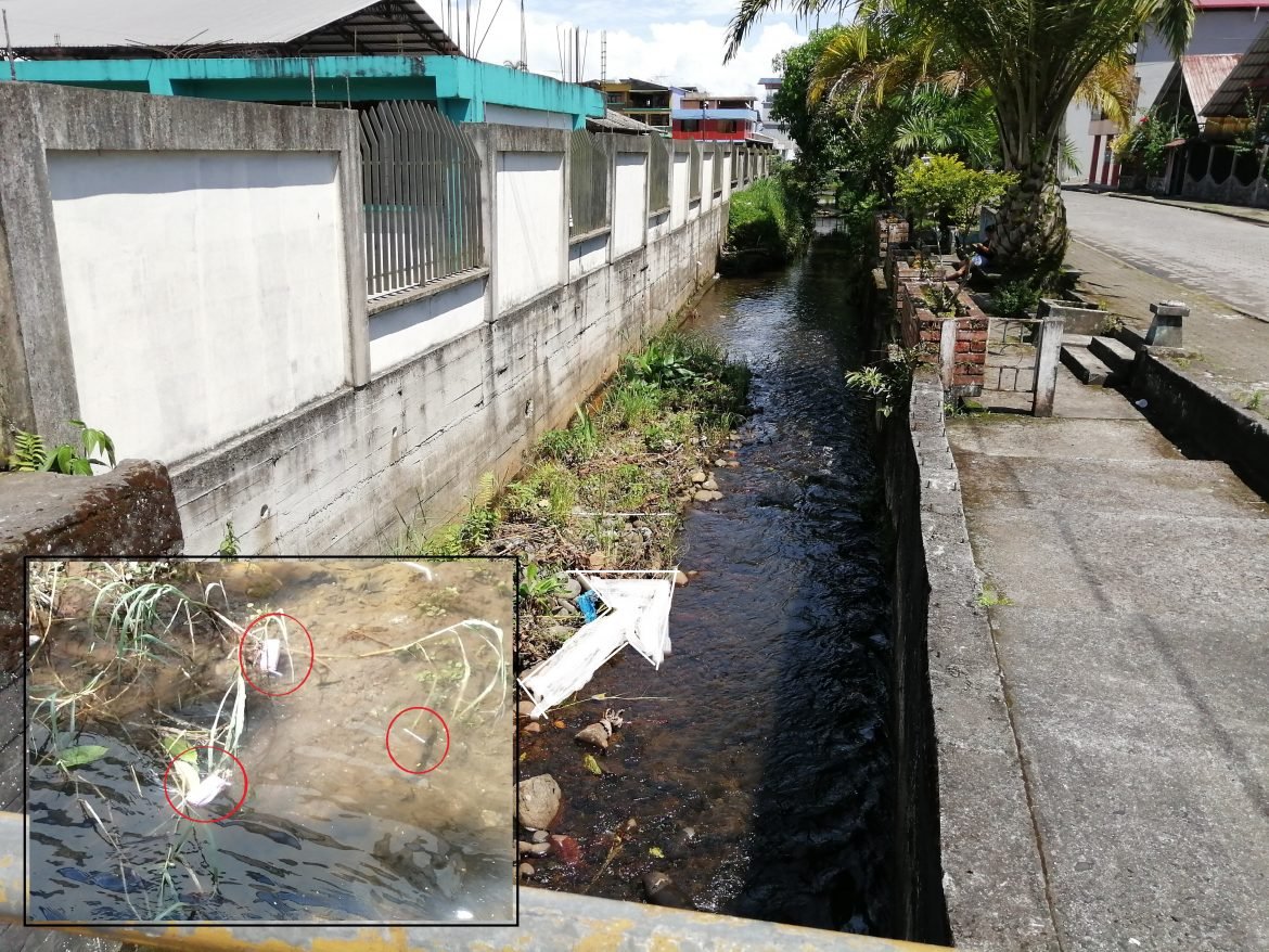 Palora tiene aún el privilegio de contar con afluentes naturales cristalinos que recorren la ciudad, hay que preservarlos. Es necesario, educar a las nuevas generaciones que no arrojen desperdicios. En la gráfica, se puede ver envases vacíos de leche azucarada y sorbetes que alguien arrojo al riachuelo junto a la escuela Quito Luz de América.