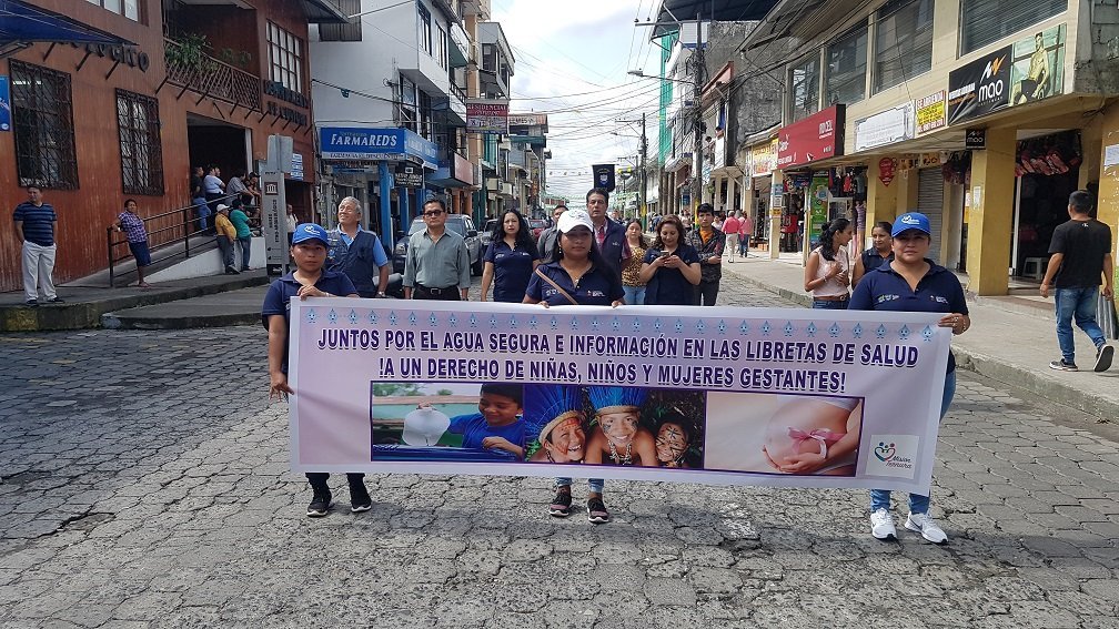 En la ciudad de Puyo, más de 500 familias de los servicios de Desarrollo Infantil del Ministerio de Inclusión Económica y Social MIES, participaron en una jornada de sensibilización sobre el derecho de niñas, niños y mujeres gestantes a consumir agua segura para prevenir la desnutrición infantil.