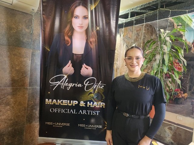 Alegría Ortiz es una maquilladora profesional de la provincia de Pastaza, tiene su propio centro de atención al público en la ciudad de Puyo ubicado en la calle Álvaro Valladares a pocos pasos del Registro Civil en el barrio Vicentino. Pero a la vez, desde hace algún tiempo viene trabajando dentro del equipo de maquilladoras de Miss Universe.