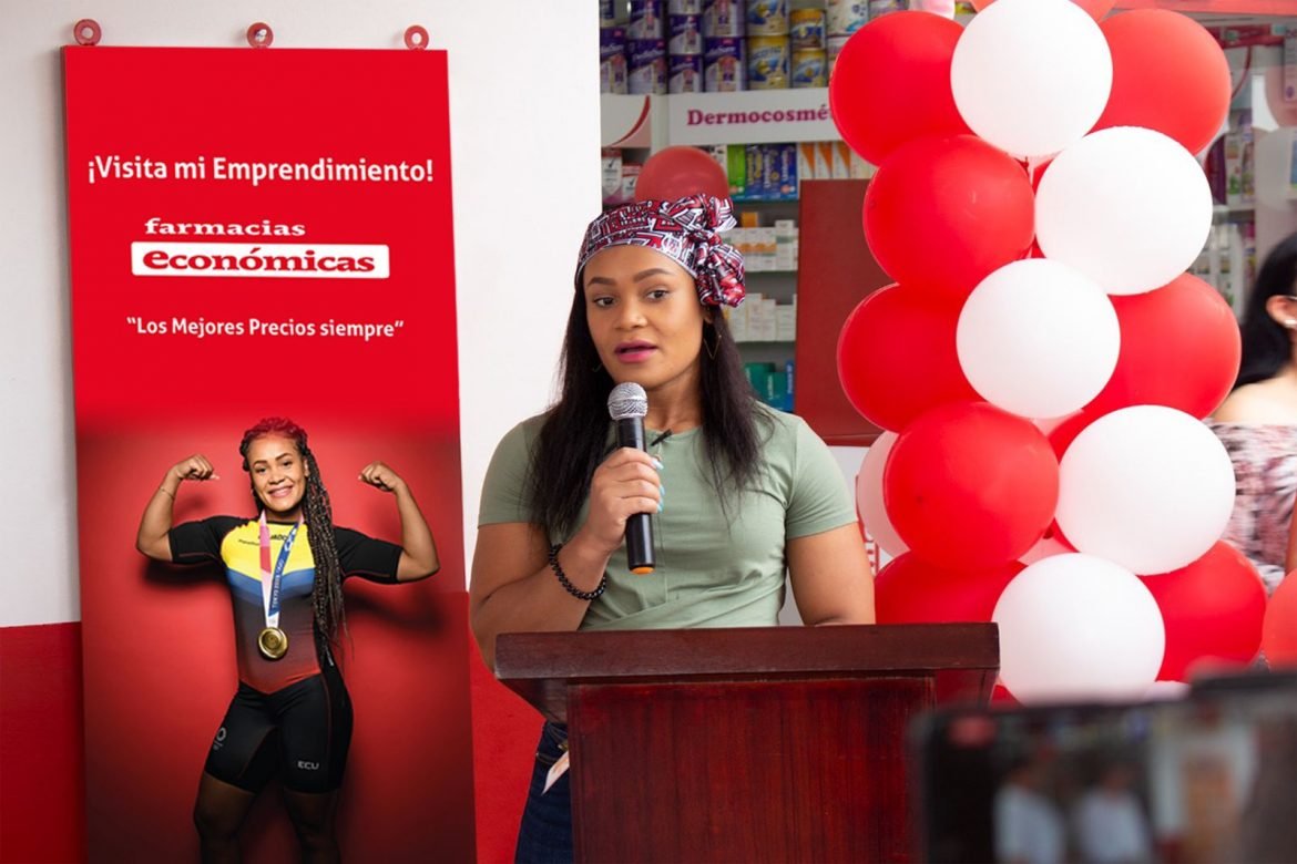 Gracias a Farmacias Económicas, nuestra campeona olímpica, recibió la franquicia de su propia farmacia en la ciudad de Puyo, entregada como un reconocimiento a su gran hazaña, al haber dejado muy en alto el nombre del Ecuador en los Juegos Olímpicos de Toqui 2021.