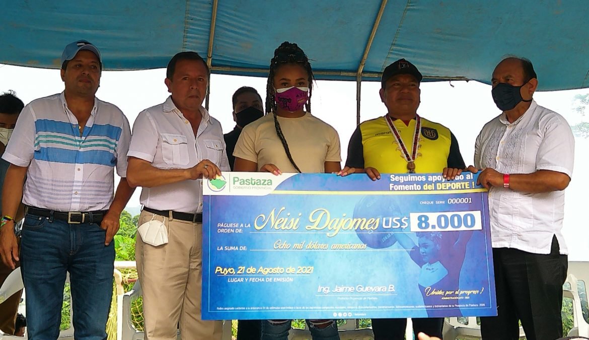Según dio a conocer el prefecto Jaime Guevara, existía una ordenanza la numero 24 que fue creada en el 14 de mayo 2006 en su primera administración donde se disponía veinte salarios mínimos vitales para los deportistas campeones de Pastaza en torneos panamericanos, sudamericanos, latinoamericanos y olímpicos en cualquier disciplina por una sola vez, por tal razón se hizo efectivo el cumplimiento con la entrega del incentivo económico de ocho mil dólares en favor de la deportista Neisi Dajomes campeona olímpica en levantamiento de pesas.