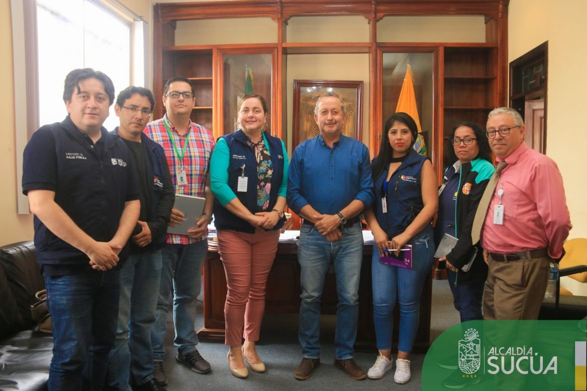 Los representantes de la Coordinación Zonal 6 de Salud mantuvieron una reunión de trabajo con el Ing. Enrique Delgado Alcalde del cantón Sucúa con el objetivo de fortalecer el trabajo interinstitucional a través del Programa Municipios Saludables, y el abordaje conjunto de la prevención de enfermedades como el Dengue.