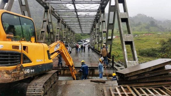 Parte del puente vehicular sobre el río Cosanga colapso e interrumpió el paso