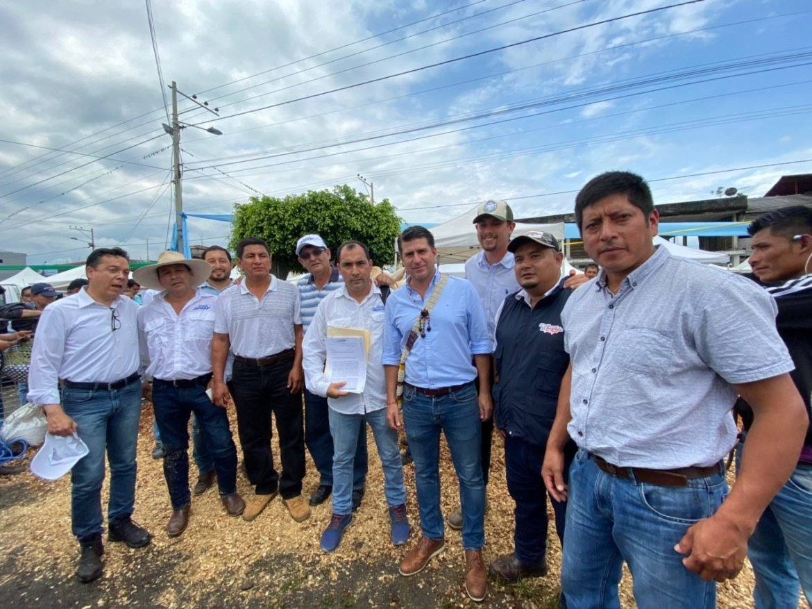 Paralelamente se entregó un título de propiedad de tierra a la Unión de Cafetaleros de Morona Santiago en la persona de Iván Patiño, así como la entrega simbólica de certificaciones a cultivos libre de la mosca de la fruta.