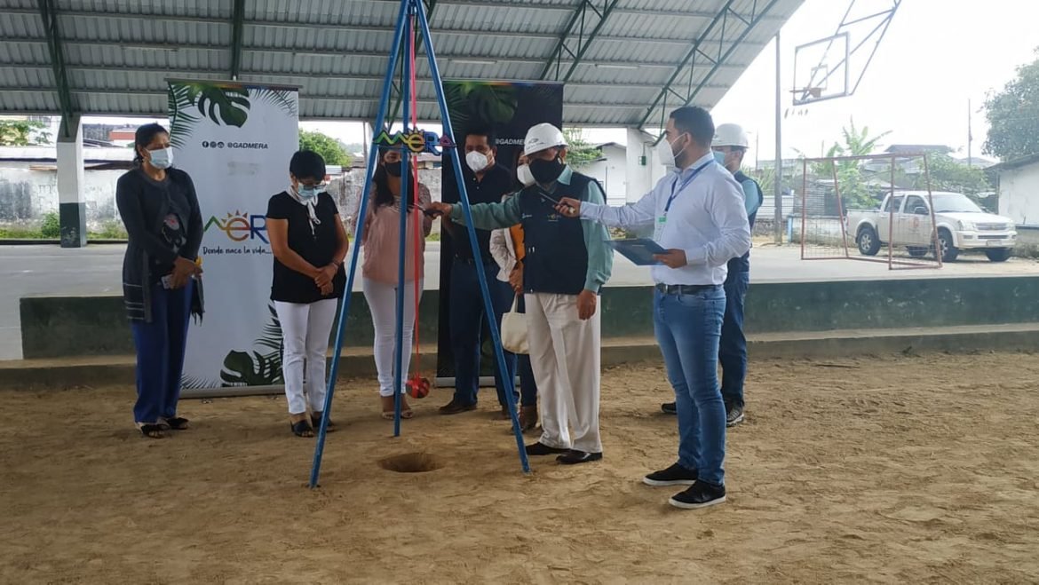 En un acto simbólico se realizó la colocación de la primera piedra con la presencia de los representantes del barrio, moradores y el alcalde Guidmon Tamayo acompañado de sus concejales y funcionarios municipales, el monto a invertir es de 62234.82 dólares que incluye cerramiento colocación de tubos para la cancha de ecuavoley, mejoramiento del campo de juego accesos y pintura esta obra tiene un plazo de 120 dias.