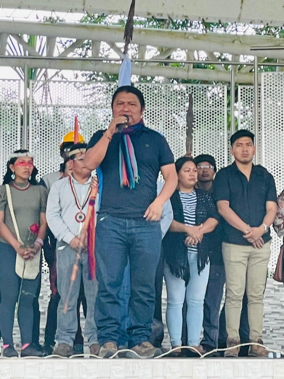 En la concha acústica del malecón del río Puyo, se realizó un acto de socialización e informe de resultados y logros obtenidos en la última movilización de las nacionalidades a nivel nacional, convocada por la CONAIE como organización madre que las aglutina a todas.