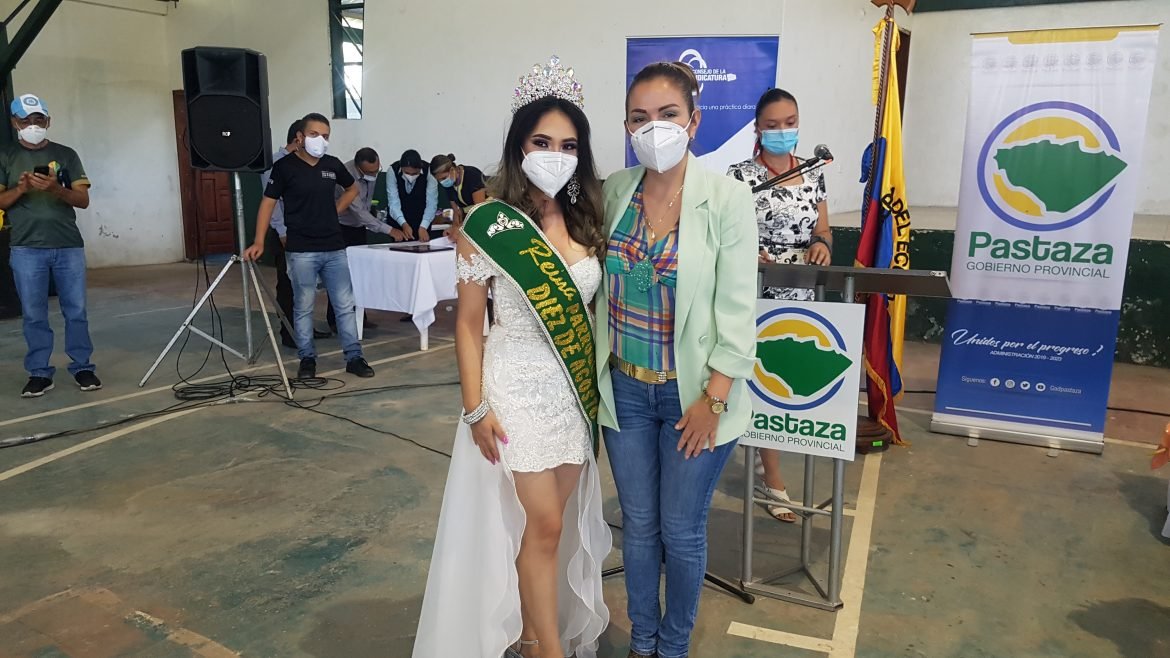 Felicitaciones a la señorita Fernanda Gallegos, quién recibió la cinta de manos de la gobernadora de Pastaza Carolina Valdiviezo, como Reina Prorrogada de la parroquia Diez de Agosto para el periodo 2020 – 2021.