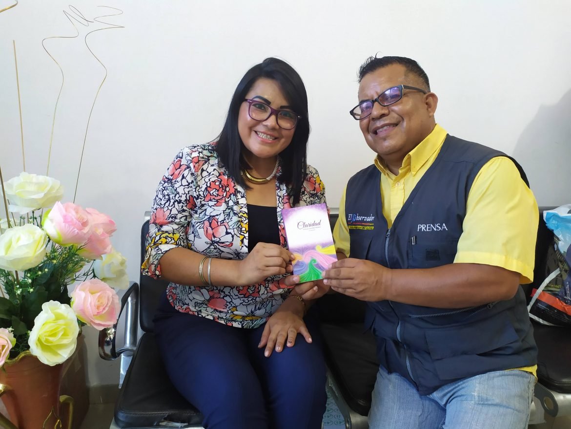 Nuestro compañero Andrés Ortega hace la entrega a la ganadora del libro, Angélica Naula. Felicidades.