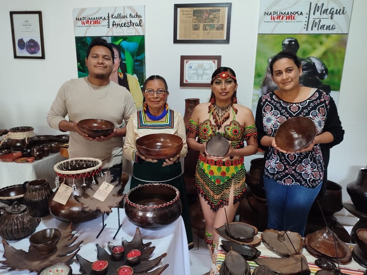 Serafina Cerda, una mujer amazónica de 66 años de edad de la provincia de Napo, a quien su madre le transfirió saberes y técnicas tradicionales en la elaboración de piezas de cerámicas hechas a mano. Durante más de 28 años, ha trabajado compartiendo sus saberes hacia sus hijos, nietos, personas de su comunidad y a través de alianzas público privadas ha capacitado a más de 2000 personas entre niños, mujeres y varones de los sectores rurales de la provincia de Napo, manteniendo su identidad, conservando y fortaleciendo el patrimonio cultural inmaterial amazónico.