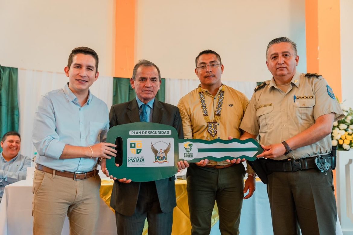 En el marco de la Sesión Solemne Conmemorativa por los 57 Años de Parroquialización de Shell, el Gobierno Provincial de Pastaza, hizo la entrega simbólica de dos vehículos entregados a la Policía Nacional como un aporte para combatir la inseguridad en esta parroquia.