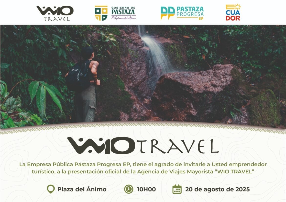 Bajo la visión del prefecto André Granda, el Gobierno de Pastaza y la Empresa Pública Pastaza Progresa EP, nace WIO TRAVEL, la primera agencia mayorista que conectará a los viajeros con la riqueza natural, cultural y espiritual de nuestro territorio.