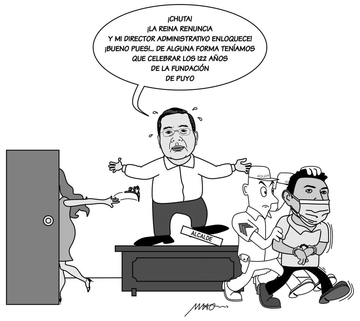 – Mire, compadre; en el ajedrez puede no haber reina pero no por eso se acaba el juego. Es igual a lo que está pasando ahora en Puyo; ya no hay reina pero sí hay celebración de aniversario…