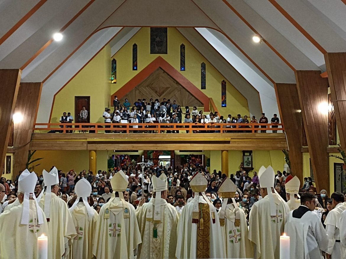 En horas de la noche, se realizó la Solemne Eucaristía de Clausura del Año Jubilar de la Catedral de Puyo, en sus 50 años de consagración, que fue presidida por el Nuncio Apostólico Andrés Carrascosa, quien agradeció el trabajo de los misioneros que han pasado por esta jurisdicción, a quienes al momento ejercen su apostolado y a las nuevas vocaciones que están siguiendo el llamado de Jesús para servir a Dios en este hermoso lugar. A todos ellos, les impartió una bendición especial, así como también a todo el pueblo en general.